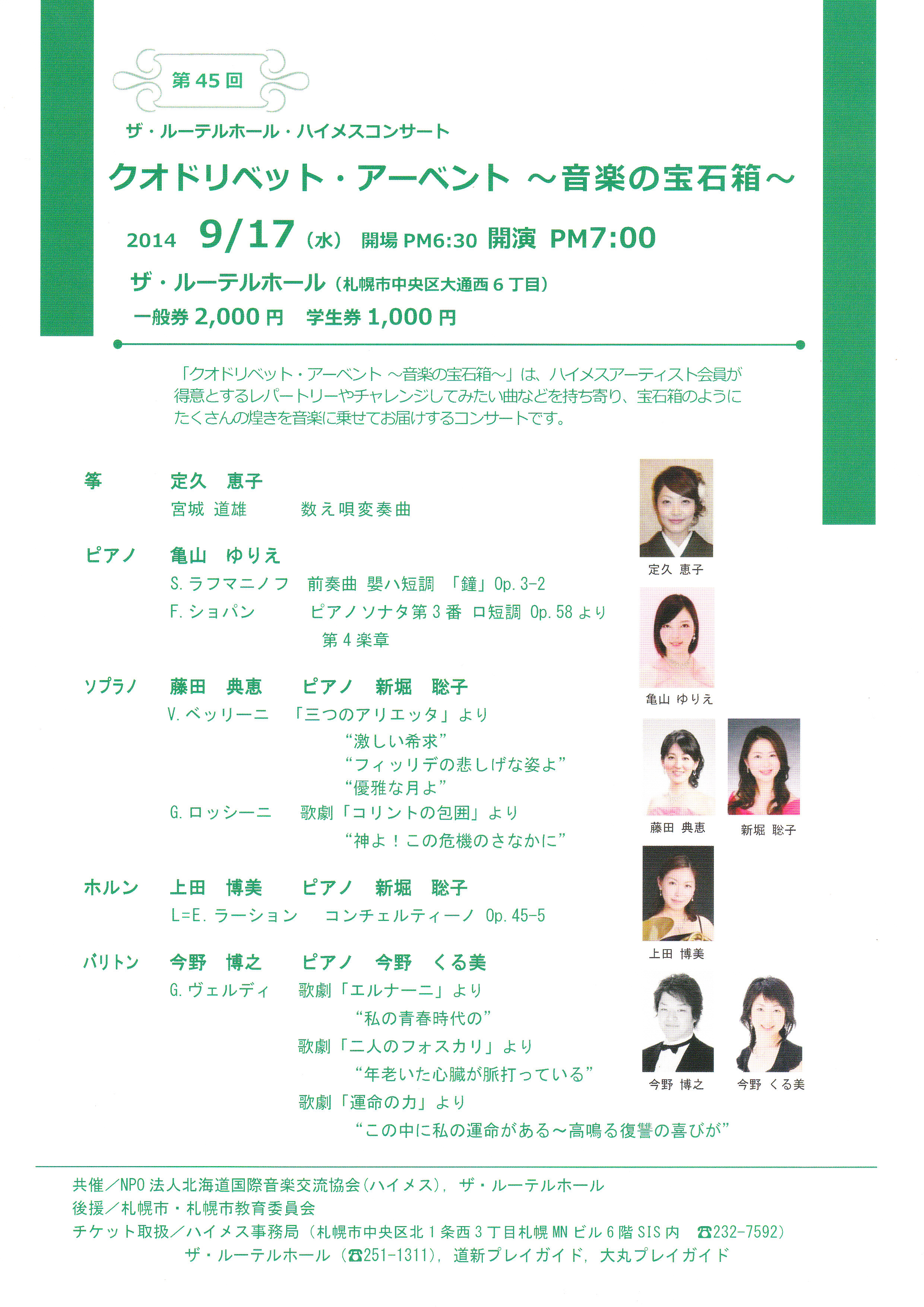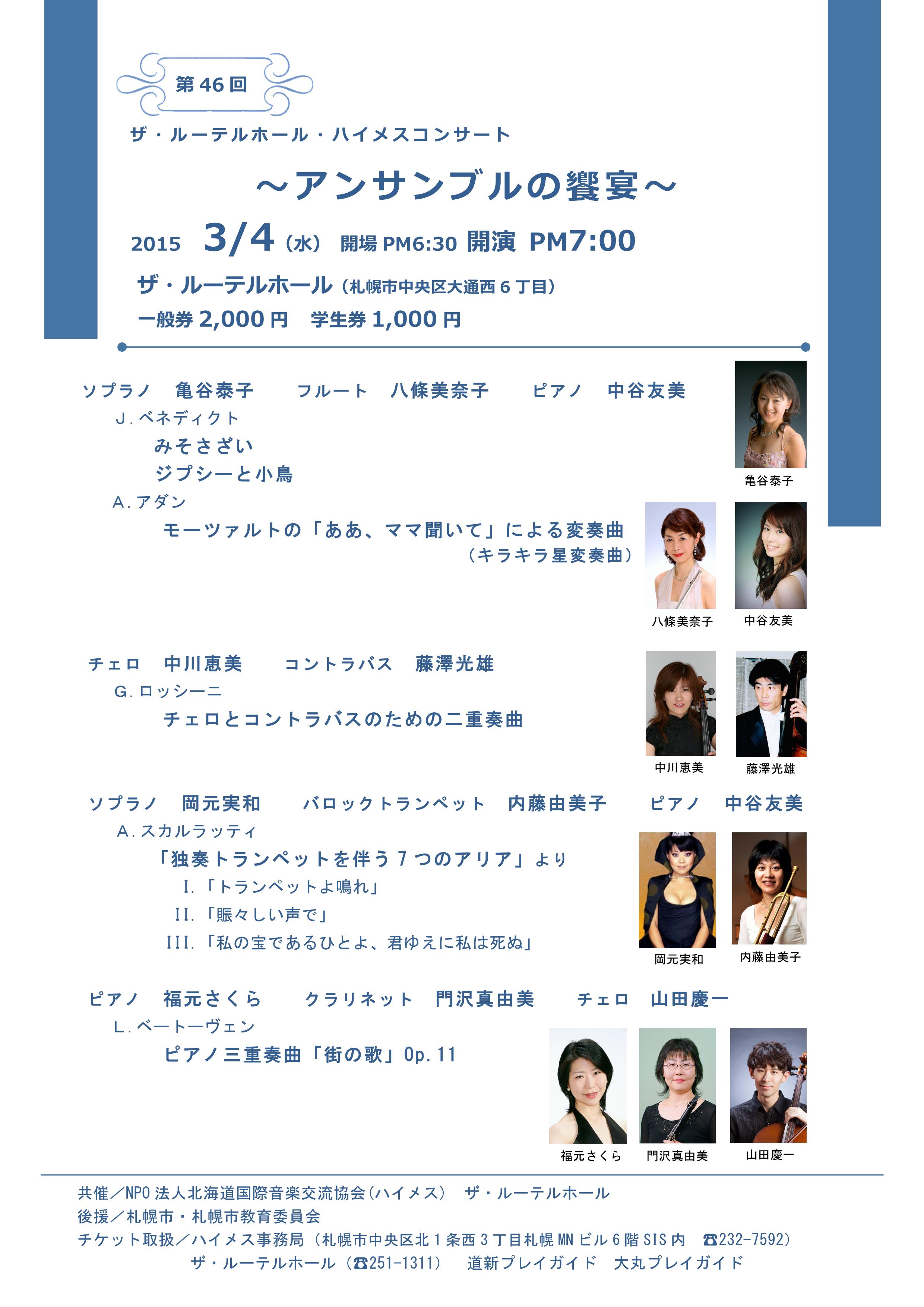 (チケット取扱:大丸プレイガイド、道新プレイガイド、ザ・ルーテルホール、ハイメス事務局)