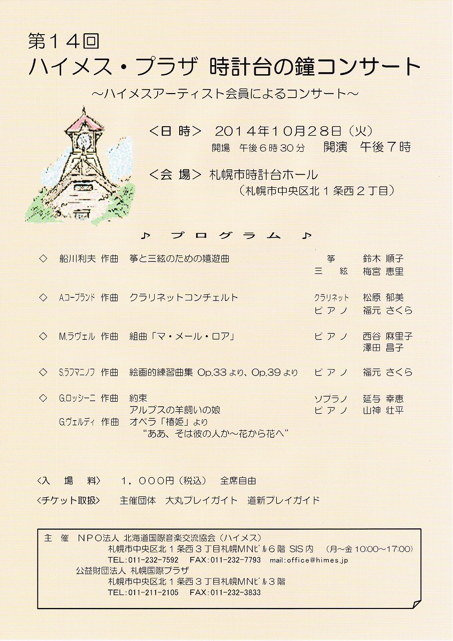 (チケット取扱:大丸プレイガイド、道新プレイガイド、ハイメス事務局、札幌国際プラザ)